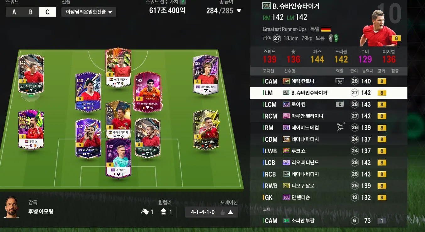 현재 위의 스쿼드를 이용하고있는데 bp 350조 있습니다.