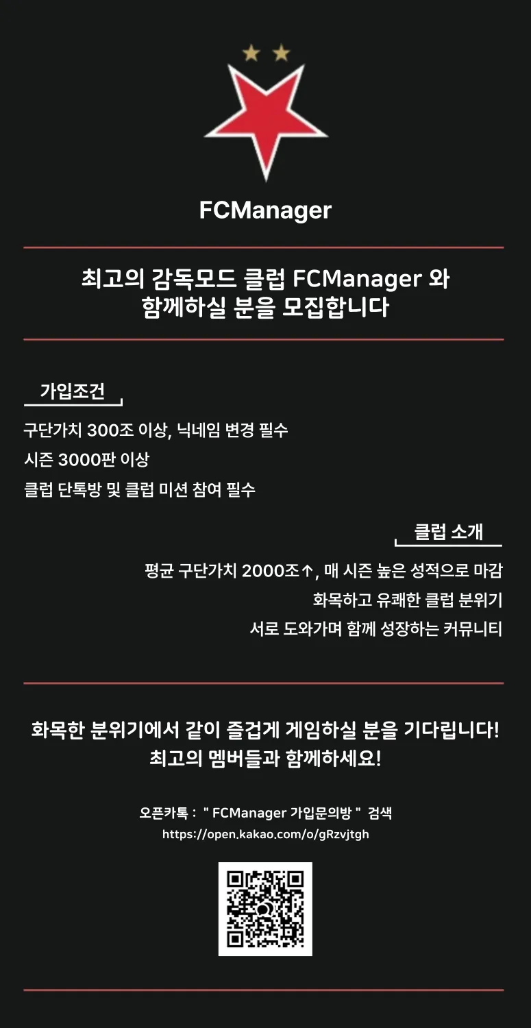 ⍣ TOP10 클럽 "FCManager" 신규 클럽원을 모집합니다 ⍣