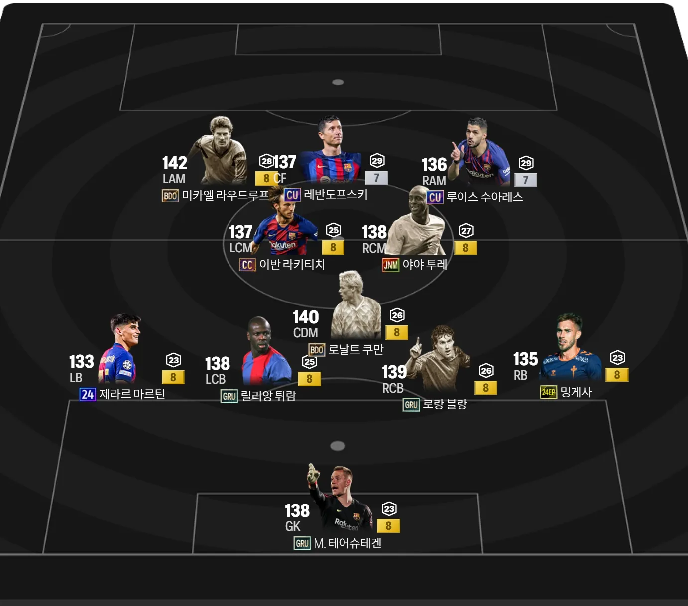120~130조 정도로 바르셀로나 팀을 해보려고합니다.